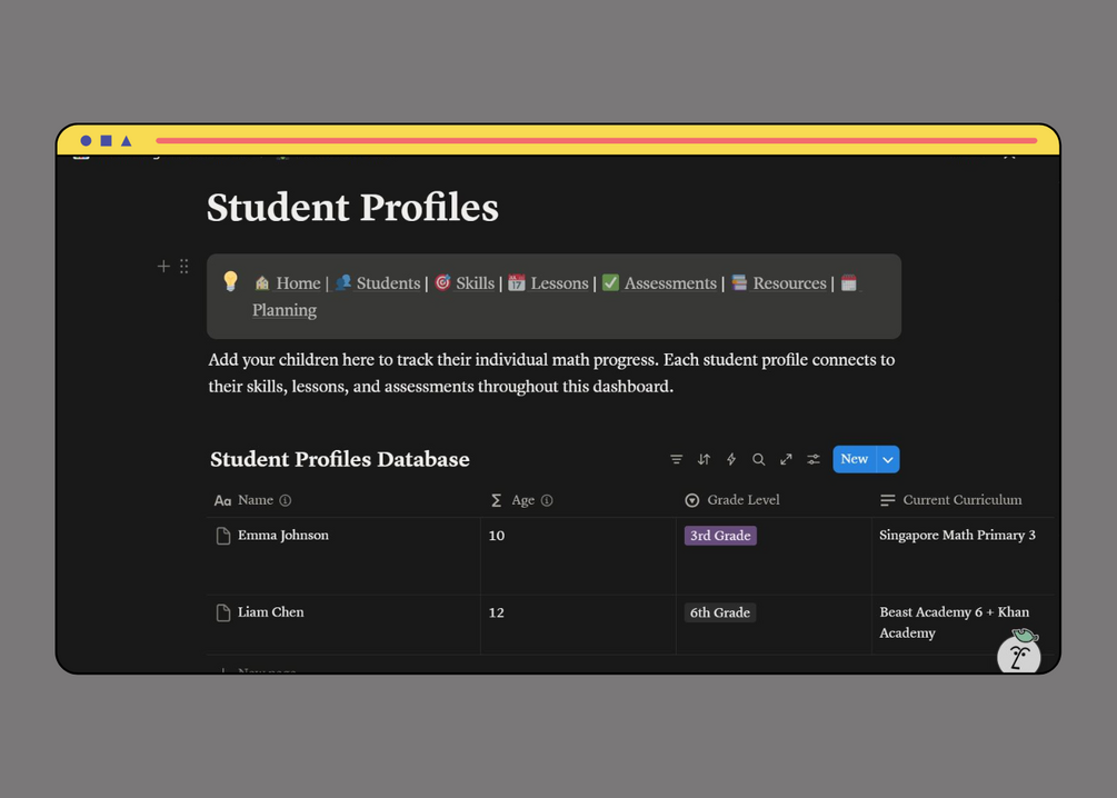 This Notion template automates the tedious parts of homeschool math tracking so you can focus on teaching.